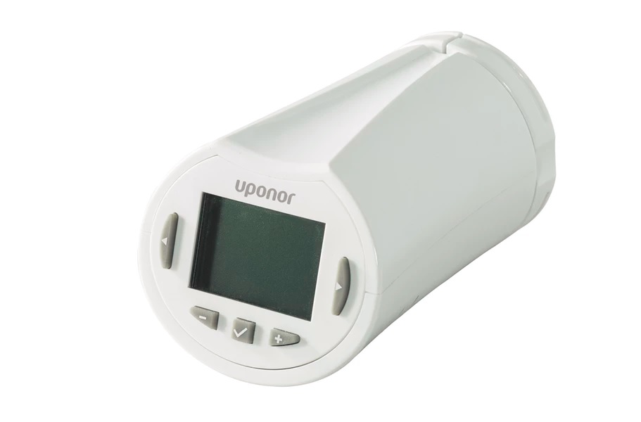 Uponorin patteritermostaatti, joka on yhteensopiva useiden patteriventiilien kanssa.